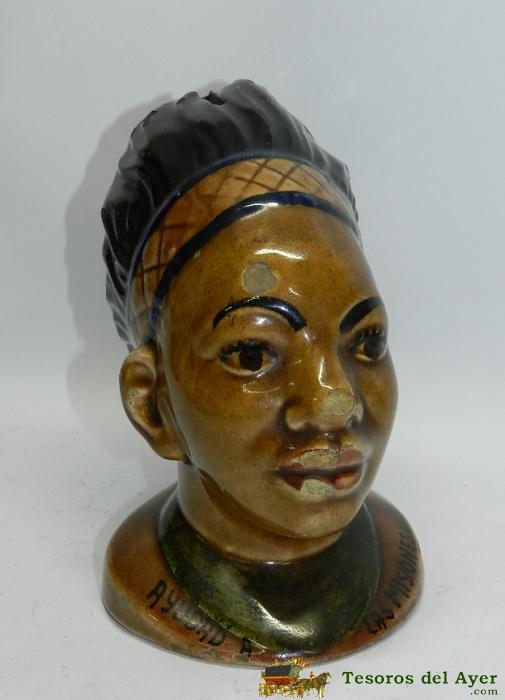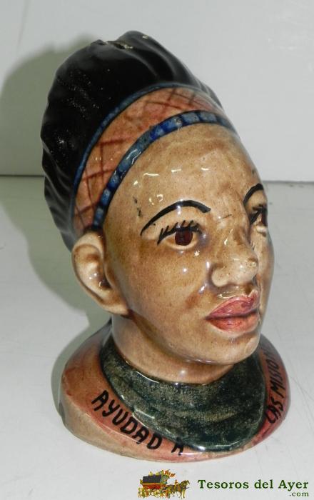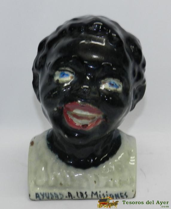 ANTIGUA HUCHA DEL DOMUND DE NEGRITO AÑOS 40 - DE CERAMICA COMPLETAMENTE ORIGINAL, TAL COMO SE VE EN LAS FOTOS - MIDE 17 CMS. DE ALTURA APROXIMADAMENTE - SANTA INFANCIA, AYUDA A LAS MISIONES. SUPER RARA DE ENCONTRAR. POR LO DEMAS ESTA EN EXCELENTE ESTADO D