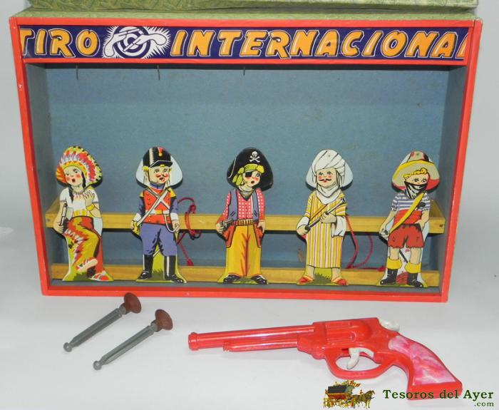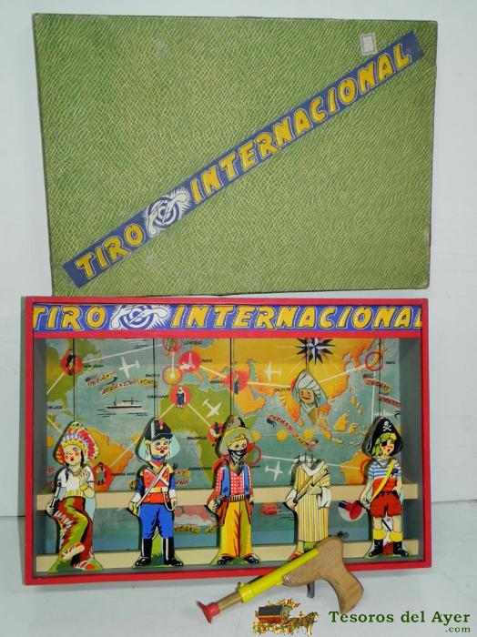 ANTIGUO Y PRECIOSO JUEGO - PIN PAN PUN, TIRO INTERNACIONAL - CON SU CAJA ORIGINAL, BUEN ESTADO DE CONSERVACION - INCLUYE LA PISTOLA CON DOS VENTOSAS, MIDE 48 X 33 CMS. AÑOS 40 - 50, LAS CABEZAS ESTAN PEGADAS, SEGURAMENTE PARA PODERLO EXPONER Y QUE NO SE