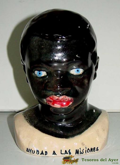 ANTIGUA HUCHA DEL DOMUND AÑOS 40 - DE CERAMICA COMPLETAMENTE ORIGINAL, BUEN ESTADO DE CONSERVACION, TAL COMO SE VE EN LAS FOTOS - NEGRITO - MIDE 17 CMS. DE ALTURA APROXIMADAMENTE - SANTA INFANCIA, AYUDA A LAS MISIONES