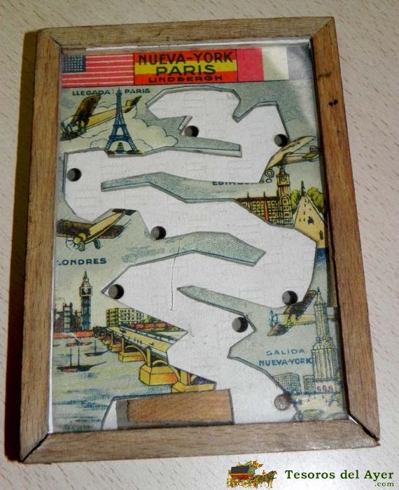 ANTIGUO JUEGO DE MESA, NUEVA YORK - PARIS FBRICADO EN 1927 CON MOTIVO DEL PRIMER VUELO TRANSCONTINENTAL AEREO DE LINDBERGH, EXCELENTE ESTADO, MIDE 13,7 X 10 X 2 CMS.