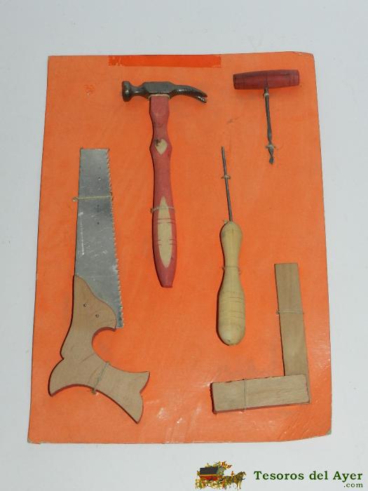 ANTIGUO JUEGO DE CARPINTERIA PARA NIÑO, APÑOS 50, EL CARTON QUE ALBERGA TODO MIDE 29,5 X 21 CMS. LLEVA SIERRA, MARTILLO, PUNZON, REGLA Y OTRO ELEMENTO. BUEN ESTADO DE CONSERVACION.