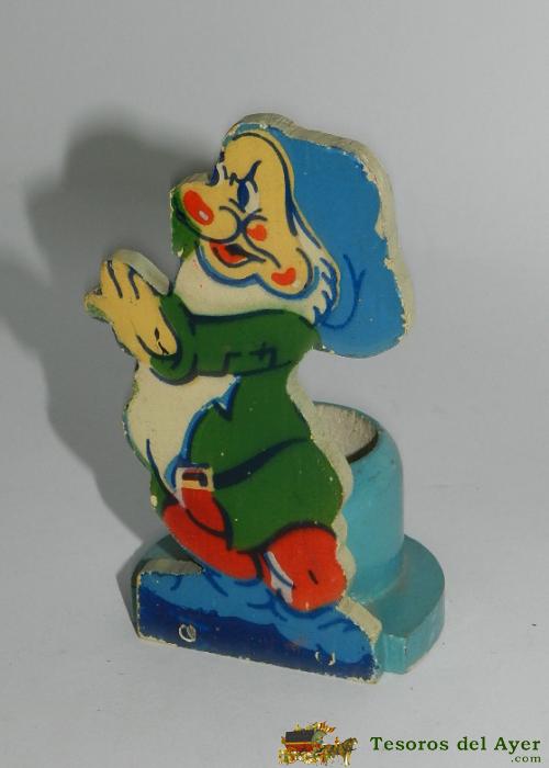 ANTIGUO RECIPIENTE PARA LAPICEROS DE MADERA CON FORMA DE ENANITO DE BLANCA NIEVES, AÑOS 40, MIDE 11 CMS. DE ALTURA. CAJA 2
