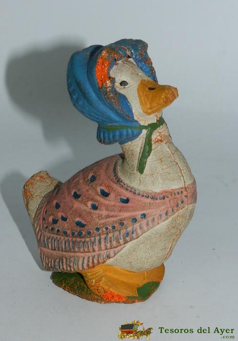 ANTIGUA FIGURA DE JEMIMA PUDDLE-DUCK DE GOMA, MADE IN AUSTRIA, MIDE 10,5 CMS. DE ALTURA, AñOS 30.