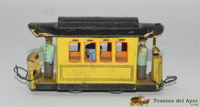 TRANVIA MINIATURA, REALIZADO EN MADERA - TAL COMO SE VEN EN LAS FOTOS QUE HEMOS PUESTO - MIDE 7 CMS DE LARGO.