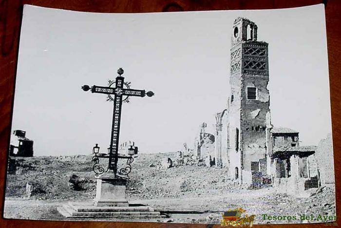 ANTIGUA FOTOGRAFIA ORIGINAL DE BELCHITE (ZARAGOZA) CRUZ DE LOS CAIDOS . GUERRA CIVIL ESPAÑOLA - MIDE 17,8 X 12,5 CMS.