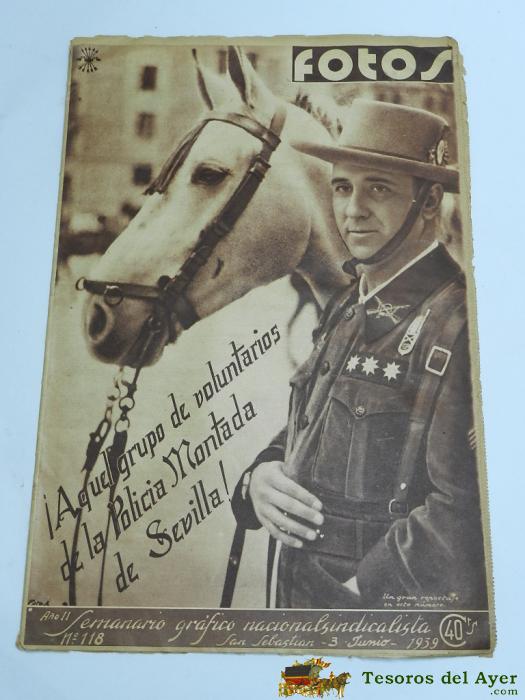 ANIGUA REVISTA FOTOS - VOLUNTARIOS POLICIA MONTADA SEVILLA - 3 JUNIO 1939 - GUERRA CIVIL - Nº 118 - CABALLERIA, EL ADIOS A LA LEGIóN CONDOR, MIDE 38 X 26 CMS, 30 PAG.