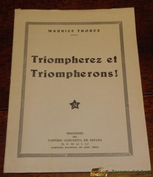 FOLLETO GUERRA CIVIL, TRIOMPHEREZ ET TRIOMPHERONS, MAURICE THOREZ, EDICIONES DEL PARTIDO COMUNISTA DE ESPAÑA, (S.E. DE LA I. C.) COMISION NACIONAL DE AGIT. PROP. DISCOURS PRONONCE DANS LE CINEMA DE L´OLYMPIA DE VALENCIA, MEETING DU 2 FEVRIER 1937, TIENE 1