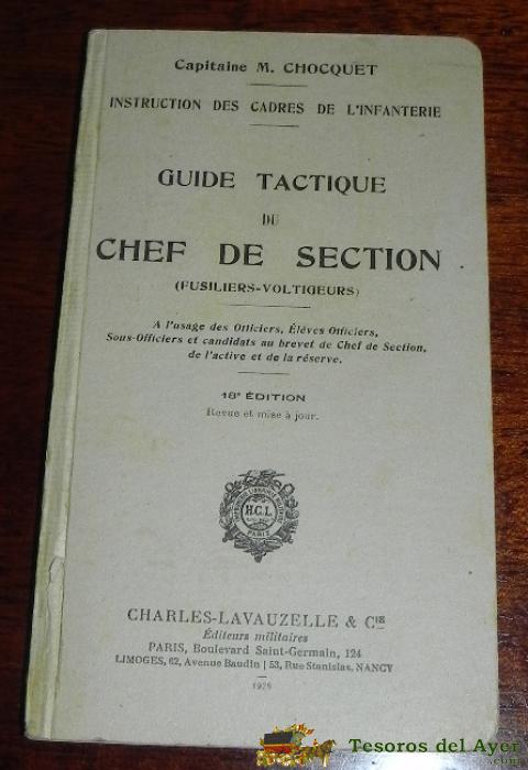 LIBRO GUERRA CIVIL - 1936 - GUIDE TACTIQUE DU CHEF DE SECTION FUSILIERS VOLTIGEURS . CAPITAINE M. CHOCQUET, INSTRUCTIONS DES CADRES DE L´INFANTERIE, 18º EDITION, 94 PAGINAS, MIDE 19 X 11 CMS. ESTE LIBRO ESTABA DENTRO DE UNA COLECCION DE MANUALES ORIGINALE