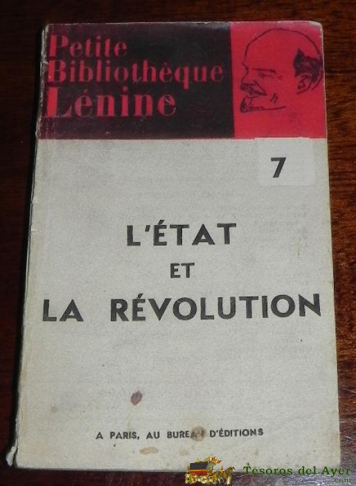 LIBRO GUERRA CIVIL - 1936 - L´ETAT ET LA REVOLUTION, PETITIE BIBLIOTHEQUE LENINE, BUREA E´EDITIONS PARIS, 158 PAGINAS, MIDE 17 X 11 CMS. ESTE LIBRO ESTABA DENTRO DE UNA COLECCION DE MANUALES ORIGINALES DE LA GUERRA CIVIL ESPAÑOLA, SEGURAMENTE QUE FUE UTI