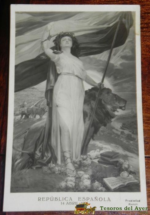 ANTIGUA POSTAL DE LA REPUBLICA ESPAÑOLA 14 DE ABRIL DE 1931, KUNZLI, SIN CIRCULAR