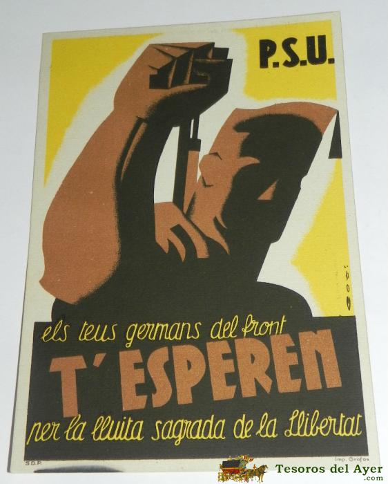 ANTIGUA POSTAL GUERRA CIVIL, P.S.U. ELS TEUS GERMANS DEL FRONT T´ESPEREN PER LA LLUITA SAGRADA DE LA LLIBERTAT, IMP. GRAFOS, P.S.U. - U.G.T. EDICIONS DEL SECRETARIAT D´AGITACIO I PROPAGANDA, 100% ORIGINAL, SIN CIRCULAR, TAL COMO SE VE EN LAS FOTOGRAFIAS P