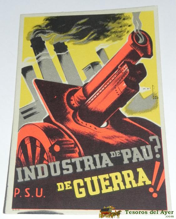 ANTIGUA POSTAL GUERRA CIVIL, P.S.U. - U.G.T. ¡ IMP. GRAFOS, P.S.U. - U.G.T. EDICIONS DEL INDUSTRIA DE PAU ? DE GUERRA ¡¡ - EDICIONS DEL SECRETARIAT D´AGITACIO I PROPAGANDA, 100% ORIGINAL, SIN CIRCULAR, TAL COMO SE VE EN LAS FOTOGRAFIAS PUESTAS.