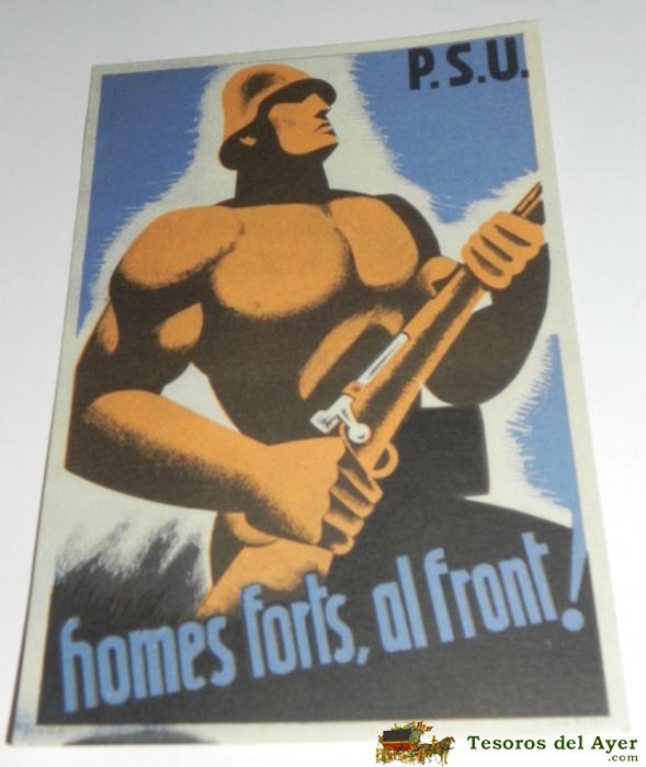 ANTIGUA POSTAL GUERRA CIVIL, P.S.U. - U.G.T. HOMES FORTS, AL FRONT ¡ - EDICIONS DEL SECRETARIAT D´AGITACIO I PROPAGANDA, 100% ORIGINAL, SIN CIRCULAR, TAL COMO SE VE EN LAS FOTOGRAFIAS PUESTAS.