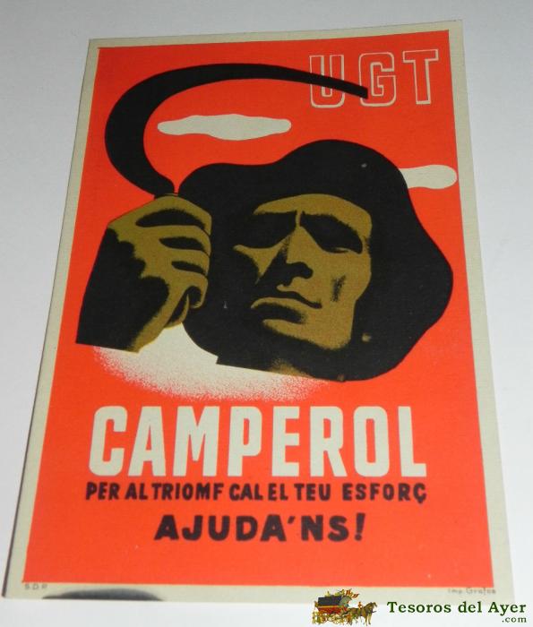 ANTIGUA POSTAL GUERRA CIVIL, P.S.U. - U.G.T. CAMPEROL PER AL TRIOMF CAL EL TEU ESFORC AJUDA ´NS ¡ - EDICIONS DEL SECRETARIAT D´AGITACIO I PROPAGANDA, 100% ORIGINAL, SIN CIRCULAR, TAL COMO SE VE EN LAS FOTOGRAFIAS PUESTAS.