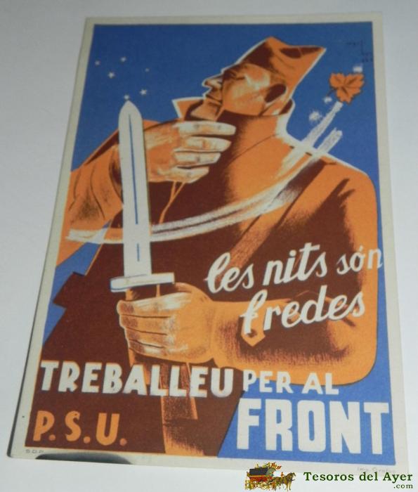 ANTIGUA POSTAL GUERRA CIVIL, P.S.U. - U.G.T. LES NITS SON FREDES TREBALLEU PER AL FRONT - EDICIONS DEL SECRETARIAT D´AGITACIO I PROPAGANDA, 100% ORIGINAL, SIN CIRCULAR, TAL COMO SE VE EN LAS FOTOGRAFIAS PUESTAS.