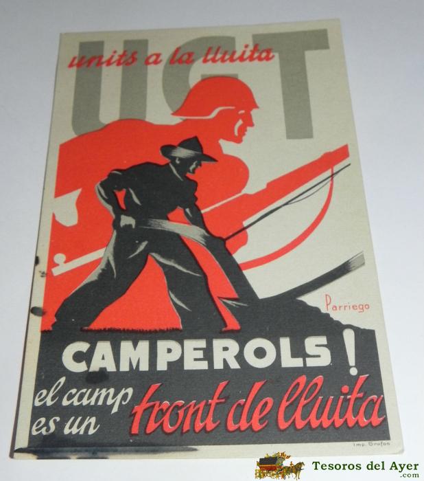 ANTIGUA POSTAL GUERRA CIVIL, P.S.U. - U.G.T. UNITS A LA LLUITA CAMPEROLS EL CAMP ES UN FRONT DE LLUITA - EDICIONS DEL SECRETARIAT D´AGITACIO I PROPAGANDA, 100% ORIGINAL, SIN CIRCULAR, TAL COMO SE VE EN LAS FOTOGRAFIAS PUESTAS.