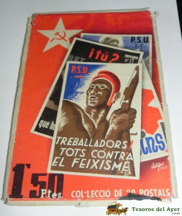 ANTIGUO SOBRE DONDE VENIA LA COLECCION DE 20 POSTALES DE GUERRA CIVIL, P.S.U. - U.G.T. - EDICIONS DEL SECRETARIAT D´AGITACIO I PROPAGANDA, 100% ORIGINAL, , TAL COMO SE VE EN LAS FOTOGRAFIAS PUESTAS