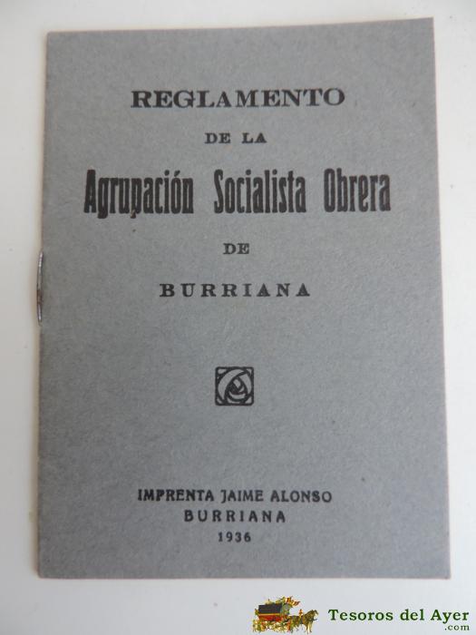 REGLAMENTO DE LA AGRUPACION SOCIALISTA OBRERA DE BURRIANA (CASTELLON) 1936 GUERRA CIVIL, TIENE 11 PAGINAS, MIDE 9,7 X 7 CMS.