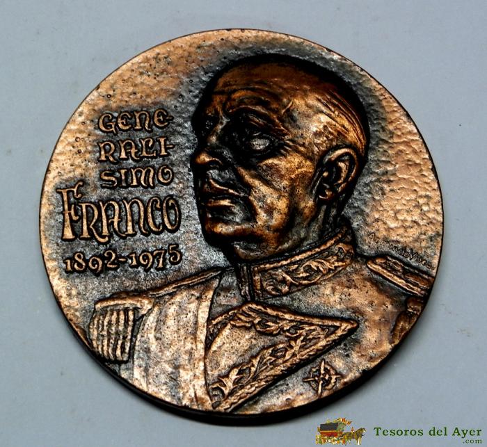 MEDALLA DE COBRE DEL GENERALíSIMO FRANCO 1892- 1975. TESTAMENTO DE FRANCO, EN LA PARTE DELANTERA FIGURA EL GENERALíSIMO Y EN LA TRASERA SUS úLTIMAS FRASES DE SU TESTAMENTO POLíTICO QUE LEYó ARIAS NAVARRO. MIDE 8 CMS. DE DIAMETRO, BUEN ESTADO DE CONSERVACI
