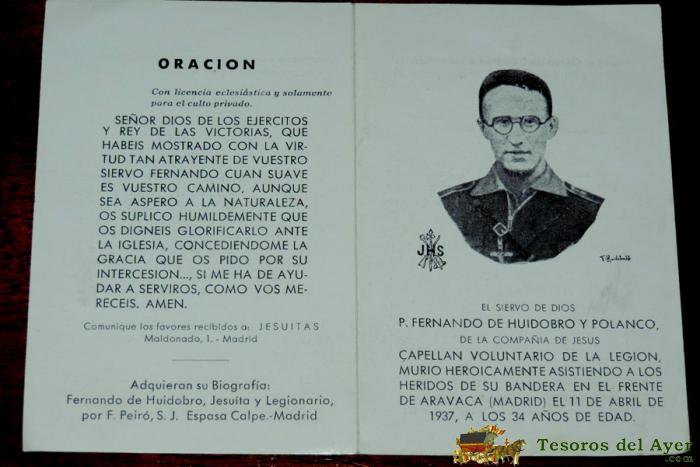 RECORDATORIO GUERRA CIVIL DE FERNANDO DE HUIDOBRO Y POLANCO, CAPELLAN VOLUNTARIO DE LA LEGION, MURIO HEROICAMENTE ASISTIENDO A LOS HERIDOS DE SU BANDERA EN EL FRENTE DE ARAVACA (MADRDID) EL 11 DE ABRIL DE 1937, TAL COMO SE VE EN LAS FOTOS PUESTAS,