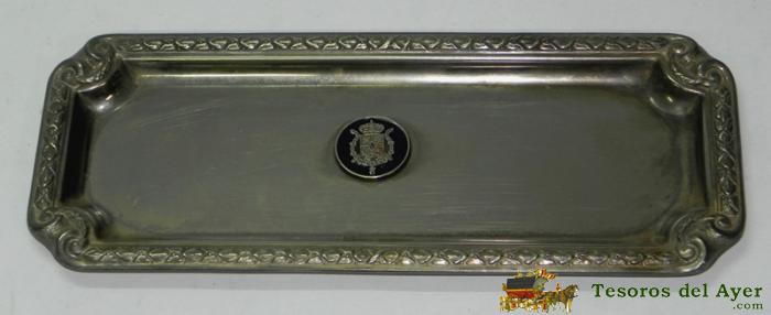 ANTIGUA BANDEJITA METALICA CON DISTINTIVO DE LA CASA REAL, MIDE 21 X 8,5 CMS. BUEN ESTADO.