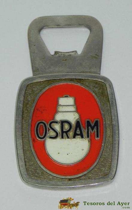 ANTIGUO ABREBOTELLAS METALICO CON PUBLICIDAD DE BOMBILLAS OSRAM, MIDE 9,8 CMS.