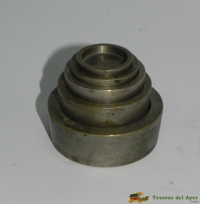 JUEGO DE 5 PESAS DE BRONCE, PESA LA MAS GRANDE 250 GR, Y LA MAS PEQUEÑA 15, LA MAS GRNANDE MIDE 5 CMS. DE DIAMTETRO.