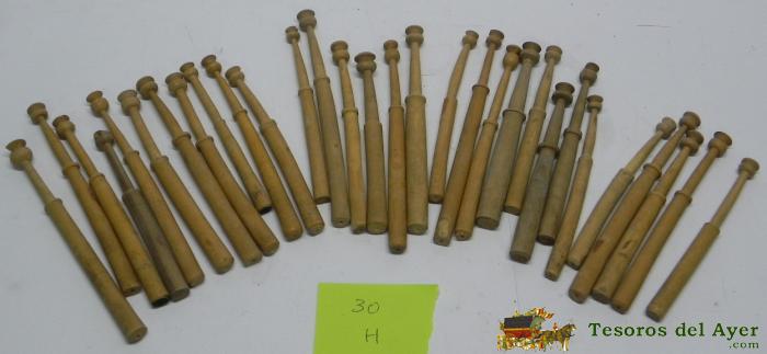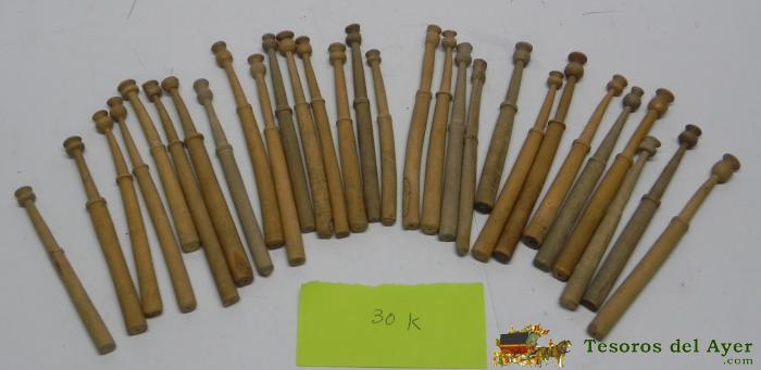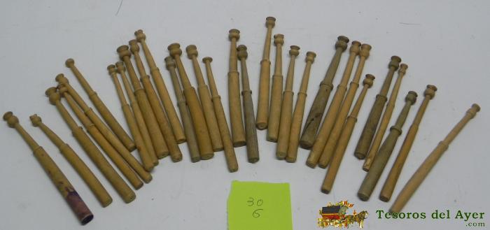 LOTE DE 30 BOLILLOS DE MADERA, SIGLO XIX, MIDEN 10 CMS. APROXIMADAMENTE CADA UNO, EXCELENTE CONJUNTO