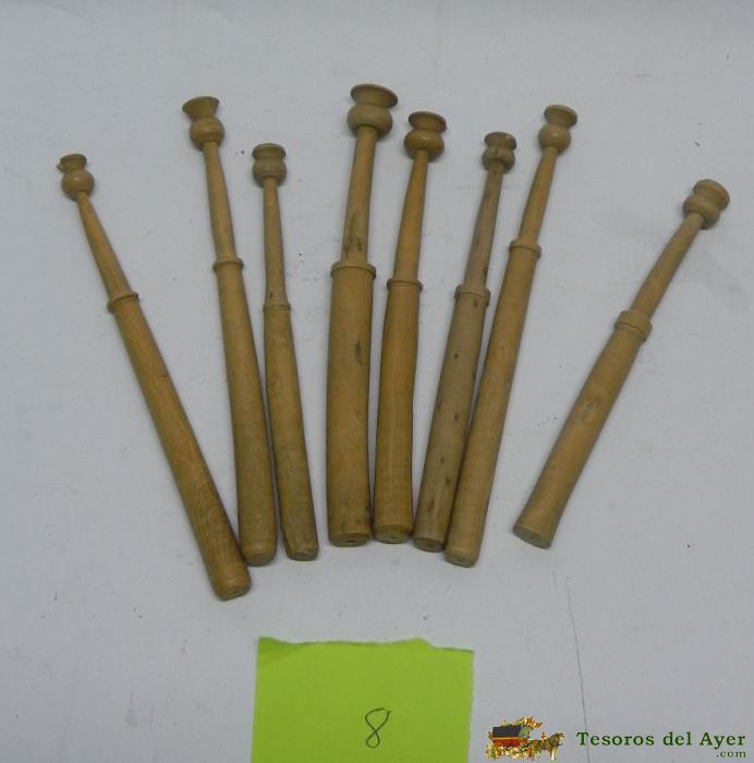 LOTE DE 8 BOLILLOS DE MADERA, SIGLO XIX, MIDEN 10 CMS. APROXIMADAMENTE CADA UNO, EXCELENTE CONJUNTO
