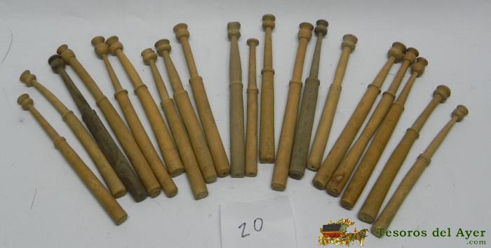 LOTE DE 20 BOLILLOS DE MADERA, SIGLO XIX, MIDEN 10 CMS. APROXIMADAMENTE CADA UNO, EXCELENTE CONJUNTO