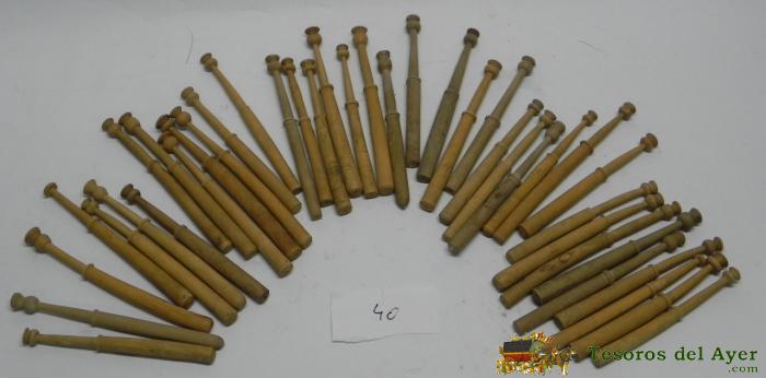 LOTE DE 40 BOLILLOS DE MADERA, SIGLO XIX, MIDEN 10 CMS. APROXIMADAMENTE CADA UNO, EXCELENTE CONJUNTO