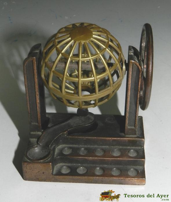SACAPUNTAS PLAYME, BOMBO LOTERíAS, MODELO FABRICADO EN METAL (CALAMITA) Y CON ACABADO COBRIZO QUE INCLUYE EN SU INTERIOR UN SACAPUNTAS. FABRICADO POR LA EMPRESA PLAYME EN BENIPARELL (VALENCIA) A PRINCIPIOS DE LOS AñOS 70.