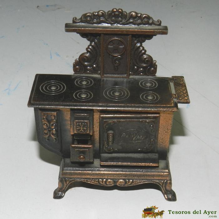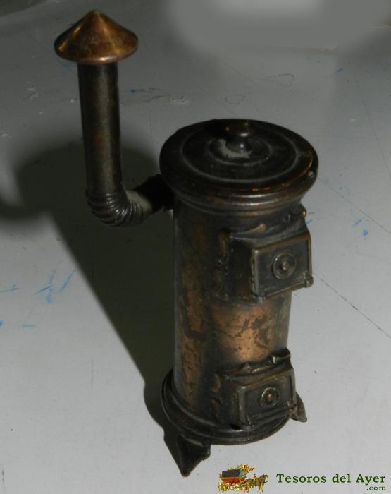 SACAPUNTAS CON FORMA DE ESTUFA DE PLAYME, MODELO FABRICADO EN METAL (CALAMITA) Y CON ACABADO COBRIZO QUE INCLUYE EN SU INTERIOR UN SACAPUNTAS. FABRICADO POR LA EMPRESA PLAYME EN BENIPARELL (VALENCIA) A PRINCIPIOS DE LOS AñOS 70.