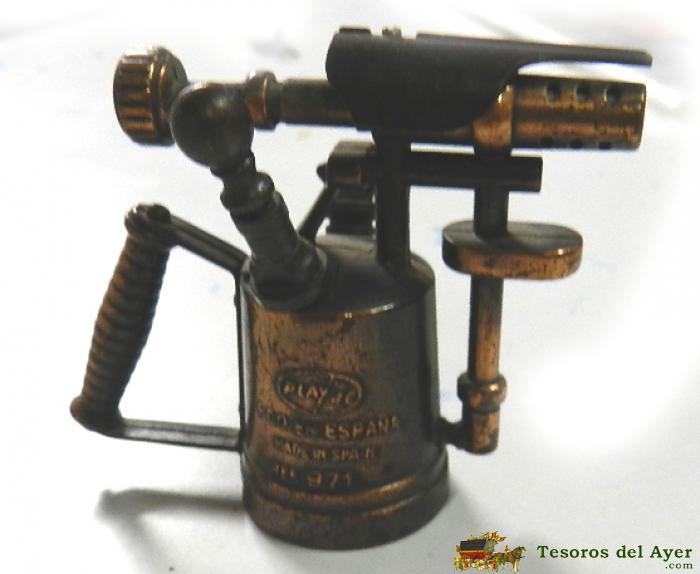 SACAPUNTAS DE SOPLETE DE PLAYME, REF. 971 MODELO FABRICADO EN METAL (CALAMITA) Y CON ACABADO COBRIZO QUE INCLUYE EN SU INTERIOR UN SACAPUNTAS. FABRICADO POR LA EMPRESA PLAYME EN BENIPARELL (VALENCIA) A PRINCIPIOS DE LOS AñOS 70.