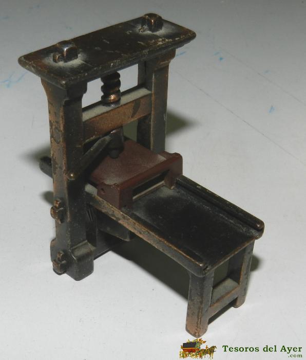SACAPUNTAS CON FORMA DE PRENSA DE PLAYME, MODELO FABRICADO EN METAL (CALAMITA) Y CON ACABADO COBRIZO QUE INCLUYE EN SU INTERIOR UN SACAPUNTAS. FABRICADO POR LA EMPRESA PLAYME EN BENIPARELL (VALENCIA) A PRINCIPIOS DE LOS AñOS 70.