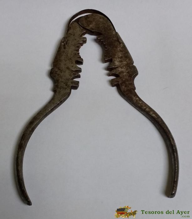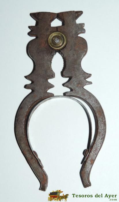 ANTIGUO Y EXCEPCIONAL PARTEPIÑONES, CASCANUECES, PARTE PIÑONES, NUTCRACKER, NUT CRACKER, PARTIDERA DEL SIGLO XVIII, REALMENTE BONITO, REALIZADO EN HIERRO, CON PRECIOSO TRABAJO DE REPUJADO, PIEZA DE MUSEO, MIDE 11,5 CMS.