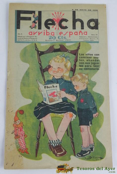 SEMANARIO FLECHA, ARRIBA ESPAÑA, AÑO 1938, GUERRA CIVIL, FALANGE - NUMERO 68, PORTADA ILUSTRADA POR MARIA CLARET, MUY BUEN ESTADO. MIDE 33 X 21,5 CMS.