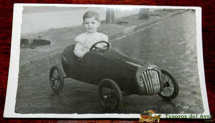 ANTIGUA FOTOGRAFIA DE NIÑO CON COCHE A PEDALES, JUGUETE, FOTOGRAFIA DE FOTO NIPEP, COLONIA DEL MANZANARES, 12 DE MADRID, TAMAÑO DE UNA POSTAL.