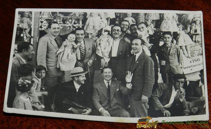 ANTIGUA FOTOGRAFIA DE SEÑORES DELANTE DE UNA JUGUETERIA CON MUÑECAS, AÑOS 40, MUY CURIOSA.