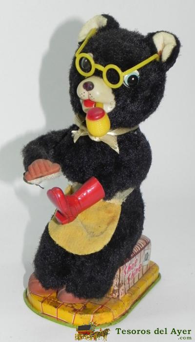 ANTIGUO JUGUETE DE OSO LIMPIABOTAS, JAPONES, MADE IN JAPAN, BASE METALICA CON FUNCIONAMIENTO A PILAS. NO FUNCIONA, CAJA 2.