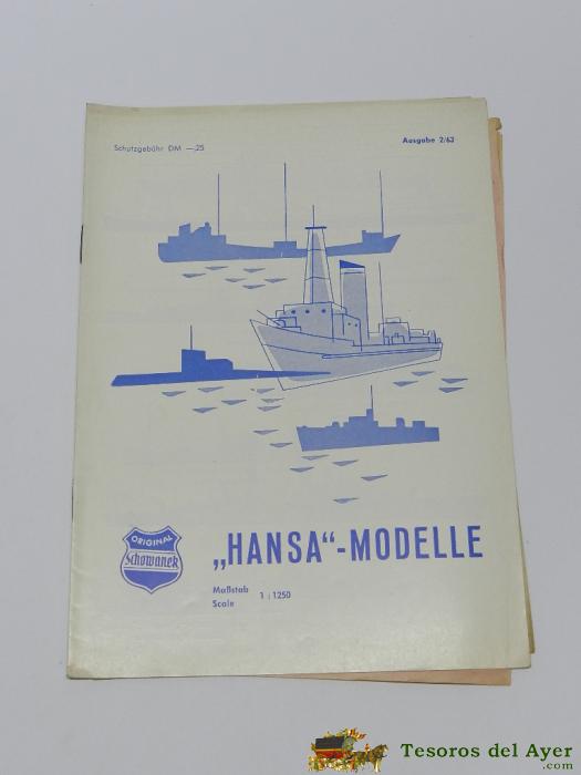 FOLLETO CATALOGO DE HANSA MODELLE, BARCOS ESCALA 1/1250, NUMERO 2/63, MIDE 21 X 15,5 CMS.