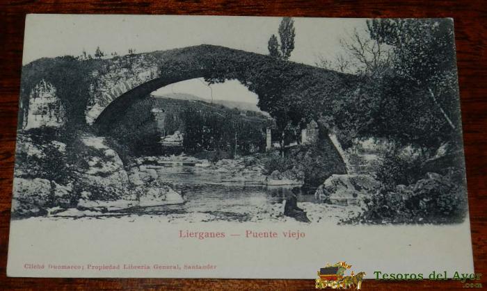 POSTAL DE LIERGANES (CANTABRIA) PUENTE VIEJO, CLICHE DUOMARCO, PROPIEDAD DE LA LIBRERIA GENERAL DE SANTANDER, NO CIRCULADA, SIN DIVIDIR.