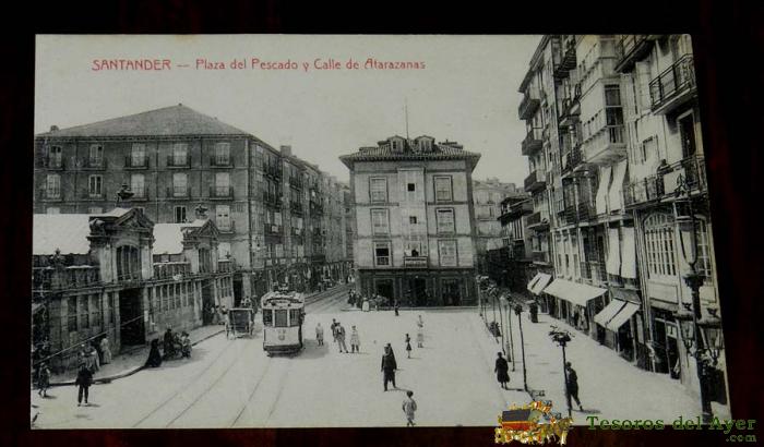 POSTAL DE SANTANDER, PLAZA DEL PESCADO Y CALLE DE ATARAZANAS, 1910, ED. E. CABRILLO, TORRELAVEGA, NO CIRCULADA.