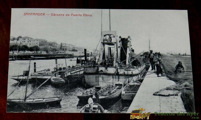 POSTAL DE SANTANDER, DARSENA DE PUERTO CHICO, FOTOTIPIA CASTAÑEIRA Y ÁLVAREZ. MADRID, NO CIRCULADA.