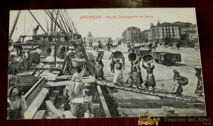 POSTAL DE SANTANDER, MUELLE, DESCARGANDO UN BARCO, NO CIRCULADA. NO PONE EDITORIAL.