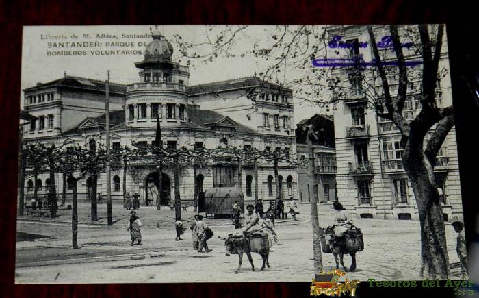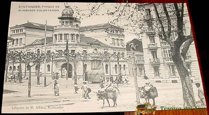 ANTIGUA POSTAL DE SANTANDER - PARQUE DE BOMBEROS VOLUNTARIOS - LIBRERIA DE M. ALBIRA - HAUSER Y MENET.