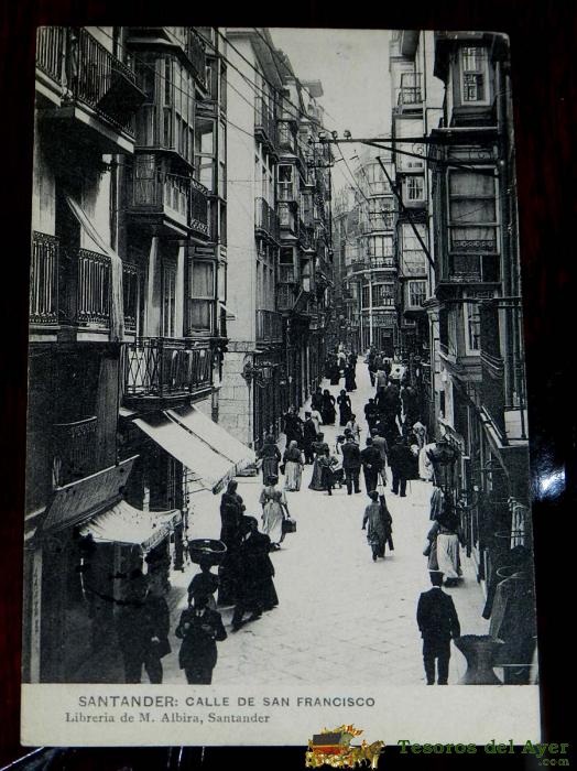 ANTIGUA POSTAL DE SANTANDER - CALLE DE SAN FRANCISCO - LIBRERIA DE M. ALBIRA - ED. HAUSER Y MENET - CIRCULADA.