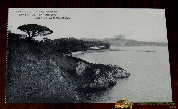 POSTAL DE SANTANDER, SARDINERO - PLAYA DE LA MAGDALENA. LIBRERÍA DE M. ALBIRA. NO CIRCULADA
