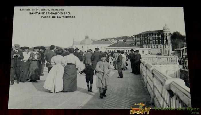 POSTAL DE SANTANDER, SARDINERO, PASEO DE LA TERRAZA, LIBRERIA DE M. ALBIRA, NO CIRCULADA.