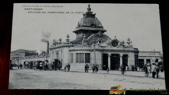 ANTIGUA POSTAL DE SANTANDER - ESTACION DEL FERROCARRIL DE LA COSTA - LIBRERIA VIUDA DE ALBIRA - ED. HAUSER Y MENET - NO CIRCULADA.